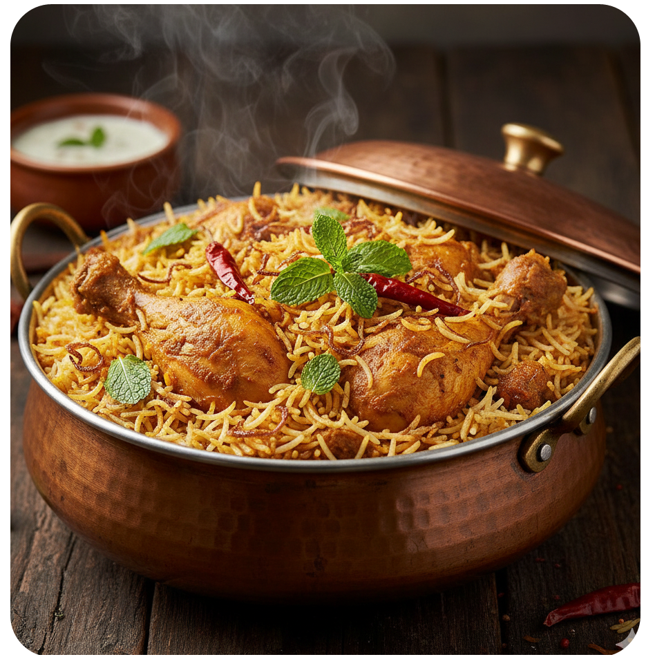 • 🔥 Slow-Cooked Perfection: We use traditional dum-style cooking that locks in flavor, aroma, and moisture.